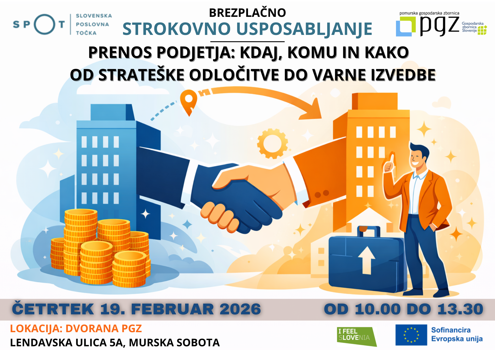 Na usposabljanju boste podjetniki, lastniki podjetij, direktorji, računovodje ter finančniki pridobili konkretne informacije o možnostih in postopkih vezanih na prenos in prodajo podjetij.